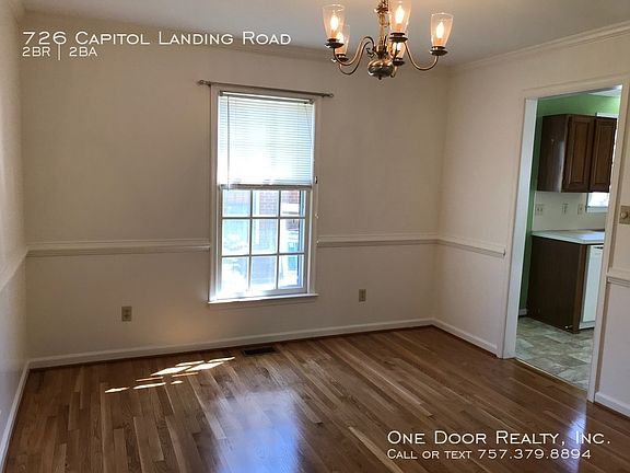 This 1550 square foot single family home has 2 bedrooms and 1.5 bathrooms. This home is located at 726 Capitol Landing Rd, Williamsburg, VA 23185.