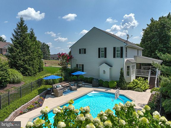 Nestled in the prestigious Cliveden Reach community, this immaculately maintained custom colonial home offers a serene retreat on 1.37 ACRES of lush landscape backing to tranquil woods. With 5 bedrooms and 3.5 baths, this residence provides ample space for comfortable living and entertaining. Feel the enchantment of the great outdoors with a private backyard oasis, complete with a covered porch, uncovered areas for basking in the sun, and a beautiful pool set amidst meticulously landscaped surroundings. Enjoy the tranquility and privacy that this outdoor space offers, making every day feel like a getaway. Step inside to discover a thoughtfully designed interior, with natural light streaming throughout, fresh paint, remote control shades on the first level and gleaming hardwood floors. The family room in this home boasts a cozy window seat that overlooks the wooded backyard as well as gas fireplace. Perfect combination for entertainment and relaxation. The kitchen is a chef's dream with granite countertops, stainless steel appliances, new stove/range (2020), new refrigerator (2021), new dishwasher (2023) and a sliding door leading to the deck, making outdoor dining a breeze. A separate dining area adds to the appeal of this ideal home for holiday gatherings and special occasions. The upper level of this home has three bedrooms and the primary suite all with new carpet (2024). The primary bedroom features a walk in closet and updated primary bath with a new shower door (2024). The second bedroom is oversized with fresh paint, a cozy window seat as well as two walk in closets. Descend to the basement, which features an additional bedroom and full bath, providing extra space for guests or versatile use. The walkout basement invites you to seamlessly transition between indoor and outdoor living, enhancing the overall functionality of the home. Plenty of storage in the lower level with an oversized unfinished room. With a three-car garage, first-floor laundry, new water heater (2024) and a meticulous history of ownership by one proud owner, this home truly embodies pride of ownership in every detail. Don't miss out on the opportunity to make this impeccable Cliveden Reach residence your own and experience the epitome of luxurious living in a peaceful and sought-after community. Property line goes past the fence line. This property is public water and sewage and trash service.
