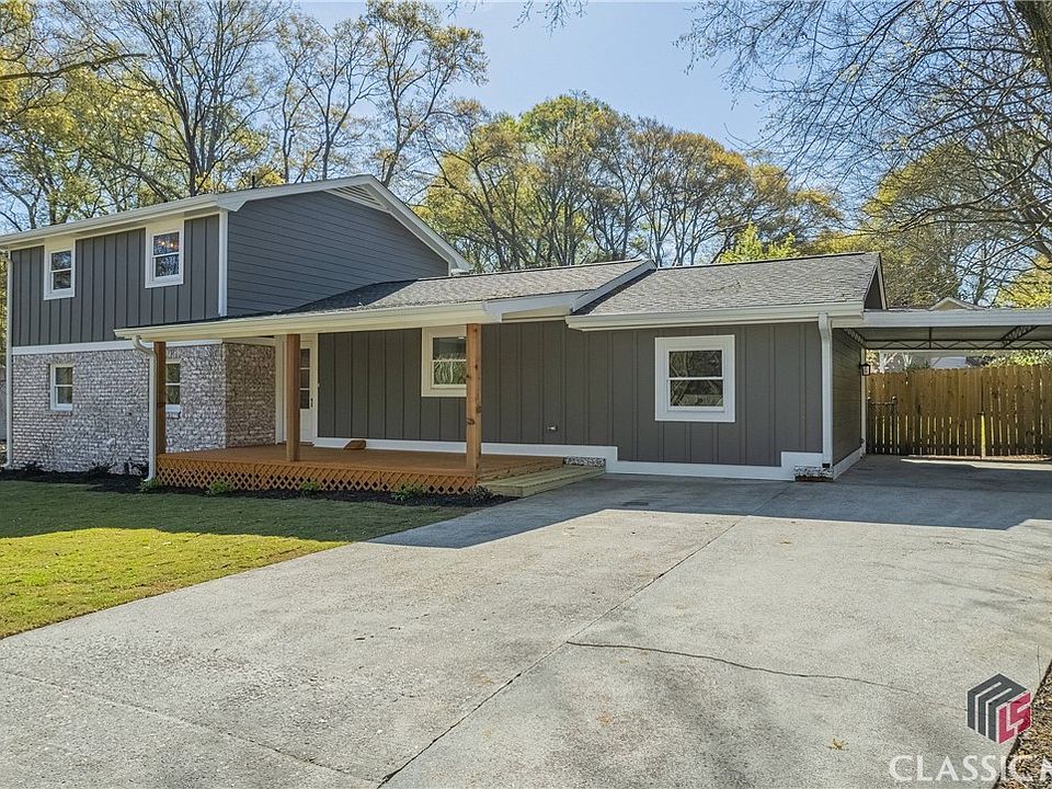 Newly remodeled, 4 bedroom and 2 bath home, just a golf cart ride from downtown Monroe! The great room welcomes you upon entry to an open concept family room, dining area, and kitchen which features all new cabinetry, stainless appliances, granite countertops, and subway tile backsplash. Large flex room off the kitchen would be great for an office with exterior entry door as well. Step down to the Owner's suite with exterior doors to the back yard. Bathroom has a double vanity with granite countertops and large decorative tile shower. Laundry room located just outside owner's suite. Upstairs you will find 3 secondary bedrooms and a full bathroom with double vanity. Upgraded LVP on main level and carpet upstairs. New lighting and plumbing fixtures, along with fresh paint throughout the entire interior and exterior of the home. Brand new roof, HVAC, and water heater. Large, level lot and fenced in back yard with 12x20 building for all your storage needs! Convenient to restaurants, shopping, and downtown! No HOA! (*photos with furniture are virtually staged images to show the rooms potential)