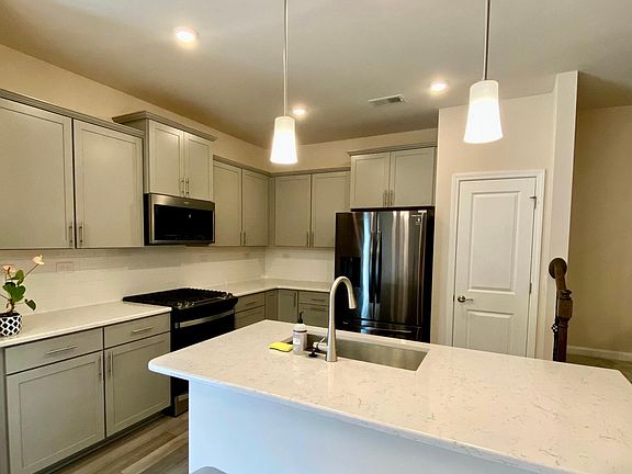 Beautiful 3 BD 2.5 BA Townhome w/1-Car Garage at the heart of RTP. New construction in 2022! Features open floorplan! Wood flooring on main level. Modern kitchen design with upgraded light gray cabinets, less-than-one-year-old appliances, lyra quartz countertops overlooking the spacious great room/dining. Upstairs include 2-2nd BDs, the primary suite include walk-in closet, a walk-in glass shower, double vanity. Great location with access to the Research Triangle Park, Umstead State Park, RDU Airport, and Brier Creek. You will also have access to Highway 55, NC-147, and I-540.! Renter responsible for utilities including gas, water and electricity No smoking allowed