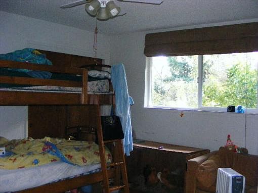 Large flag lot with 1400 sf, 2 bedrooms, 2 baths and an enclosed sun room and converted garage. The conversion was completed by the previous owners as a separate finished room with laundry closet, ceiling fan, front and back entries. Not sure if it was done with permits. Well treed with both fruit trees and evergreens. Some mature landscaping and partially fenced.