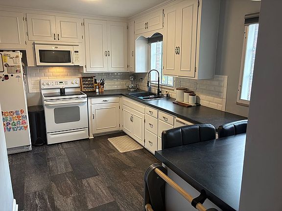 Brick tudor homeShed behind garageRefinished cabinetsLarge master suiteLarge lotGravel parking spacesFull basement