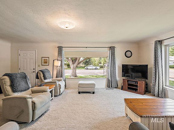 Solid brick home conveniently located in Downtown Meridian. Large windows, large yard with garden space. Quiet neighborhood, flower garden and fruit trees - peach, apple and nectarine. Lots of storage in basement with large finished flex/family room. Inviting Back yard with gas BBQ already connected to house and ready for BBQ's under the Patio cover. Plenty of room next to garage to build a bigger garage / shop.