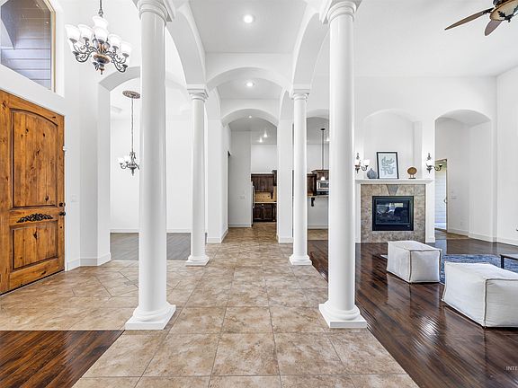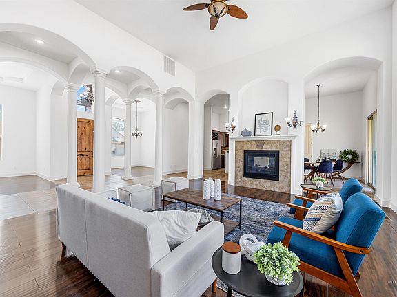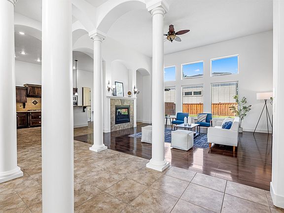 Welcome to this stunning Tuscan-style home nestled on a private corner lot by the tranquil pond of Saguaro Canyon. This custom-built charmer boasts an impressive great room with soaring 16-foot ceilings and a dual-sided fireplace, creating an atmosphere of spacious elegance and warmth. The gourmet kitchen is a chef's dream, featuring custom cabinetry, gleaming granite countertops, and stainless steel appliances. Retreat to the luxurious master suite with its high ceilings and spa-like ensuite bathroom. Discover a versatile 4th room perfect for a home office, media room, or guest space. This home offers the perfect blend of luxury, comfort, and privacy.