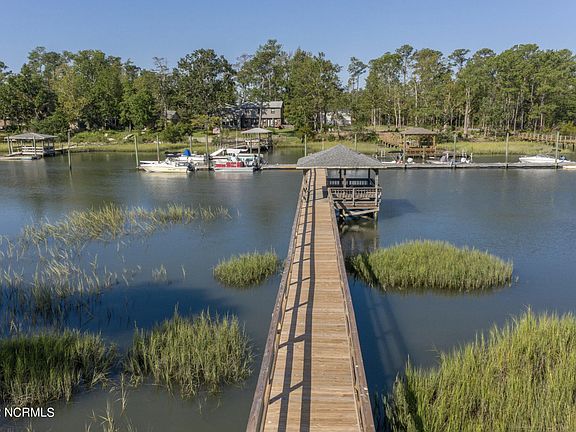 Hard to find boatslip just a short walk from your front porch! Launch your kayak and paddleboard right from your backyard or walk down to your 20ft boat slip in the neighborhood marina. This lovely home is serenely situated on Everetts Creek and is a short boat ride to the Intracoastal Waterway. This home has 3 Bedrooms, and 2 1/2 baths (large FROG could be 4th bedroom) This home boasts beautiful hardwood floors, updated kitchen with new appliances including an induction range(boil water in 1 minute!) Formal dining and eat in kitchen with walk out to the expansive deck is great for entertaining or relaxing and watching all of the wildlife on Everetts Creek. Upstairs you will find a large primary bedroom with sitting room and renovated en suite, bonus room with built in bookshelf and custom teak desk, 2 additional bedrooms and a large shared bath. Other features are an office with built ins and a screened in porch and all recently painted with coastal colors. Extensive landscaping including, azaleas, camelias, sasanquas, japanese maples and a koi pond with water feature! There is a whole house water softener and filtration system as well as a reverse osmosis system for the kitchen. Hurricane shutters were installed in 2019 for added peace of mind.