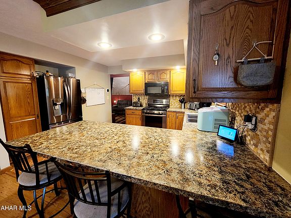 Three bedroom four bath home in Hollidaysburg School District. This nice sized home, in Penn Farms, offers a large living room with vaulted ceilings, kitchen with breakfast bar, dining room/den with a beautiful gas fireplace, half bath, large pantry and garage entrance on the first floor. The second floor offers two bedrooms with large closets, a full bath, and large master suite with vaulted ceilings and private full bathroom. Enjoy a partially finished basement with laundry, bar area with seating and bonus room for lounging and entertaining. The backyard has a large ares for gardening, shed and relaxing back deck. Add your finishing touching to make this house your home. Call listing agent for more information or your tour.