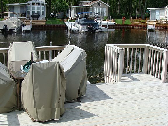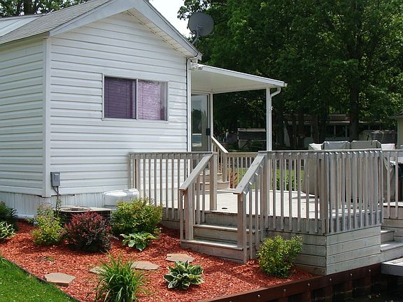 This is a great channel front lot with a view from the 1997 Riverforest park model. It features multiple docks, three season porch, storage shed, central air and beautiful landscaping. Come see how affordable it is to be at the lake in this, one of a kind, gated community on Coldwater Lake.