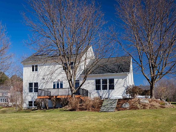 Welcome to this large, upgraded Brennan Woods home featuring 5 bedrooms and 4 baths, a bright finished lower level with bedroom and bath and sweeping mountain views There's so much curb appeal with new garage doors and lights, bluestone walk and covered porch accentuated by mature landscaping. The main floor features gleaming just refinished birch floors and surround sound ceiling speakers, crown molding, ample mudroom with built-ins and tiled floor, an office with built-ins, a spacious eat-in custom kitchen with red birch custom cabinets and large 9' island flowing to the family room, plus a living room with gas fireplace and built-ins flowing to the dining room overlooking the gorgeous yard. The large composite deck is perfect for watching the stunning sunsets and entertaining. Upstairs has hardwood floors throughout, a primary suite on the back offering privacy & views with 2 walk-in closets and bath with tile floor, two vanities, soaking tub & shower. Three more large bedrooms, a laundry area, full bath and ample linen closets complete this floor. The lower level is amazing with engineered hardwood & new carpet, a bedroom & full bath, large family room with dry bar, refrigerator & built-ins, daylight windows, multiple closets, a bulkhead & unfinished storage space. Rarely does a large, well maintained home with central air and owned solar become available! Neighborhood pool, tennis & basketball. Brennan Woods is close to schools, shopping, recreation and bike path.