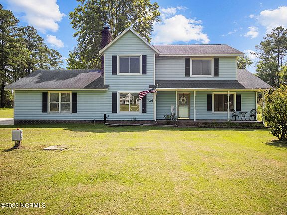 Welcome to 726 Harther Drive, a charming and inviting farmhouse residence located in Jacksonville, NC. This beautiful home is situated on nearly 3 acres of land, providing ample space for both privacy and outdoor activities. A highlight of the property is the horse barn and pasture, perfect for equestrian enthusiasts or those looking to embrace a rural lifestyle. Imagine the joy of having your own horses grazing peacefully in the pasture or taking leisurely rides on your private property! As you enter the home you will be greeted by the cozy living room that offers a perfect spot for relaxation or entertainment, with large windows that fill the room with natural light. The adjoining dining area is spacious and ideal for hosting intimate gatherings or family meals. Entering the kitchen you will see it provides ample cabinet space and a beautiful view of your horse pasture from the kitchen sink. There is also another living room located on the first floor with a gorgeous wood burning fireplace and lots of natural light. This home also boasts three generously sized bedrooms upstairs, providing ample space for the whole family. The owners suite offers a custom built in window seat and storage along with a private en-suite bathroom and walk-in closet. The additional bedrooms are versatile and can easily be transformed into a home office, hobby room, or guest quarters to suit your needs. Outside, in addition to the horse barn and pasture, the property features a large backyard that offers endless possibilities for outdoor enjoyment. Whether you envision hosting barbecues, gardening, or simply relaxing on a sunny day, this backyard provides the perfect backdrop for all your outdoor activities. Don't miss the opportunity to make 726 Harther Drive your new home. With its appealing features, convenient location, spacious land, horse barn, and pasture, this property is truly one of a kind! Schedule your showing today!