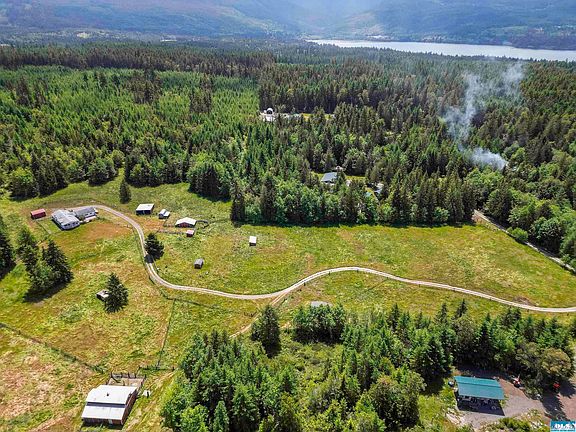 Over 43 acres of fully fenced land with railroad ties as posts with electric fencing. See the rolling pasture plus an amazing 2160 sq. ft. barn + another 864 sq ft. pole building and more! Home is a 1532 sq. ft. 3 bedroom, 2 bath manufactured with expansive front porch for a peaceful retreat and a detached 2-car garage. Check out this amazing property with endless possibilities with so much privacy, room for livestock or horses, chickens, gardening or ?