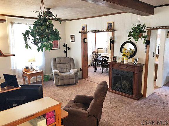 Greater Johnstown Schools.. 2 sty. aluminum sided home with 3 bedrooms, 2 bathrooms, carport & off street parking. 1st floor includes a spacious living room with open staircase & gas fireplace, formal dining room, updated 3/4 BA & nice kitchen with wood beam & vaulted ceiling & 2 skylights. On the 2nd flr. are 3 BR's & a full updated BA. Walk-up attic with a finished room & built-in shelves. Outside is a covered front porch, shed, back patio & level yard. Mostly newer windows. 100 amp breakers. Sewers will be in compliance before closing.