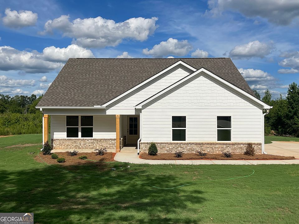 GREAT NEW CONSTRUCTION HOME on 5 ACRES! Located in the USDA 100% FINANCING AREA! Great Open Floor R plan, 3BR/2BA, COVERED BACK PORCH with outdoor fireplace, Large kitchen breakfast bar, Granite counter tops and laminate floors through out, MASTER WITH walk in Shower and WALK IN CLOSET, Laundry room, Double Garage, Hardy Siding with front brick water table! Cedar posts on covered front and back porches!