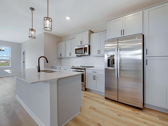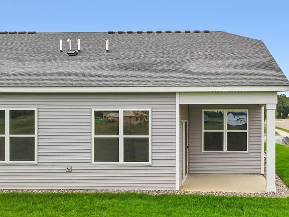This Itasca floorplan features 2 bedrooms, 2 bathrooms, and 1,325 square feet of space. Enter from the private entry on the home's side. A laundry room with an additional storage closet is just across the way and doubles as a mud room with access to the garage. At the front of the home is a bedroom and bathroom, creating a sense of privacy for your house guests. The open-concept main living area combines the family room, kitchen, and dining area in one functional space. The family room includes an electric fireplace and additional windows to ensure tons of natural light. The kitchen features plenty of counter space and cabinets, stainless steel appliances, and an island with an overhang for additional seating. There's ample space in the dining room, which is connected to your covered patio. The owner's suite is tucked away perfectly to maximize privacy. The attached en-suite bathroom includes a double-bowl sink. a walk-in shower, a linen closet, and a large walk-in closet.