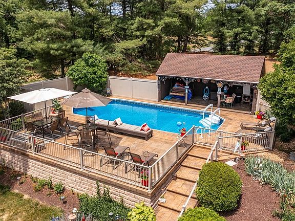 Staycation here! Don't join the crowds when you can have a luxurious resort to call your own! One owner home AND one of a kind! Just over 4000 sq ft, 4-5 bedrooms, 4.5 baths, 4 family rooms for entertaining, totally renovated kitchen that would make any cook giddy... there is something for everyone! Main level offers 3 bedrooms, 2 of which have attached baths, ideal for in-laws or teens! Master suite encompasses the 2nd floor, huge bedroom, private family room, balcony lookout AND bathroom you wont believe- complete with enormous walk in shower (w/steam shower), heated floors, sauna! Full basement with yet another great space to entertain, bring the football game and pool table & your set! Now... step out back, prepare to be amazed! From stamped concrete patios, terraced perfection- gardeners delight to the INGROUND POOL oasis surely you will have a whole new list of friends when you move here! BUT WAIT THERES MORE! H-U-G-E det. garage tucked away in the woods just waiting for the RV & workshop.... Superb FISHERSVILLE location too... Whoa, chance of a lifetime!
