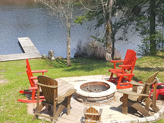 Beautiful Yr-round 2 bedroom 1.5 bath 10 year old Ranch style home with 102' of Water Frontage at Chateaugay Lake, miles of boatable water, beautiful views of water out of the living room patio doors, large connected deck that over-looks a fire pit and water to enjoy campfires at night. Sit to relax and fish, along the water's edge, on the dock where there is room for pontoons jet skis, ect. Vaulted ceilings, oak kitchen cabinets w/ sink and island, sunken living room, as well as open floor concept, large master bedroom and half bath, high speed Internet connected. Watch wildlife such as Ducks, Eagles, Geese & Loons, quiet and peaceful w/ excellent fishing, canoeing, kayaking.