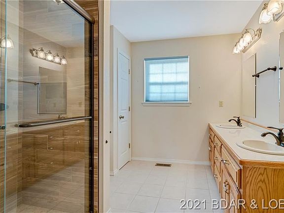 There is nothing like this on the market - Beautiful home with a lake view on over 3 acres, affording ample space and privacy for the discerning buyer under 300K. This picturesque ranch-style home offers all main-level living with a quaint porch and screened deck to sit and enjoy the bounty of nature... and no steps to the front door! The spacious living room with vaulted ceilings includes recently updated flooring and flows into the large and open kitchen and dining spaces. The huge master bedroom with dual closets includes a private bath with updated tiled walk-in shower, and french doors offer access to the screened deck. Expand your outdoor living on the nearly flat yard surrounding the home, and enjoy a meandering hike through the remainder of the wooded property with many locations where you could easily add a large shop. All of this is within 15 minutes of Camdenton schools and everything Osage Beach has to offer. This is an opportunity you don't want to miss!
