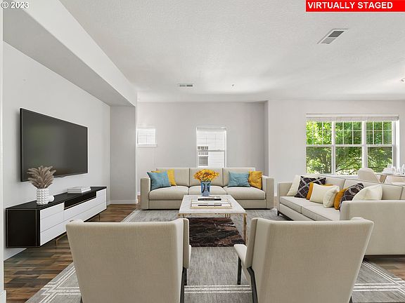 Immaculate Townhouse! Ideal starter or investment property! 3 bedrooms, 2.5 baths. Spacious and open great room floorplan. Large living area with laminate floors and high ceilings. Dining room has slider to covered deck. Kitchen with island, eating bar, and stainless steel appliances. Primary suite with vaulted ceilings. Central A/C. 1 car attached garage. Excellent community amenities - pool, playground, gym, party-room, and common area. Easy commute for Nike & Intel. Close to parks and the Streets of Tanasbourne shops. No rental cap. Nice views, too.