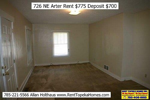 Available August 1st!726 NE Arter, Topeka, KS 66616 Located in Oakland From Strait St. by Billard Airport go 3 blocks West to Arter 4 bedroom 1 bathroom home with 1 car detached garage and basement. 2 bedrooms on main floor, 2 bedrooms upstairs and laundry located in basement.Rent $775 Deposit $700 For more information or to schedule a showing call or text Allan Holthaus at 785-221-5566 Pet Policy - Pets are welcome for an additional $100 Pet Deposit and $25 per month per pet.