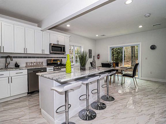 - RoomKitchenFeatures: Center Island, Ceramic Tile, Eat-In, Granite/Stone Counter, Newer, Sliding Door, Breakfast Cntr, Kitchen/Dine