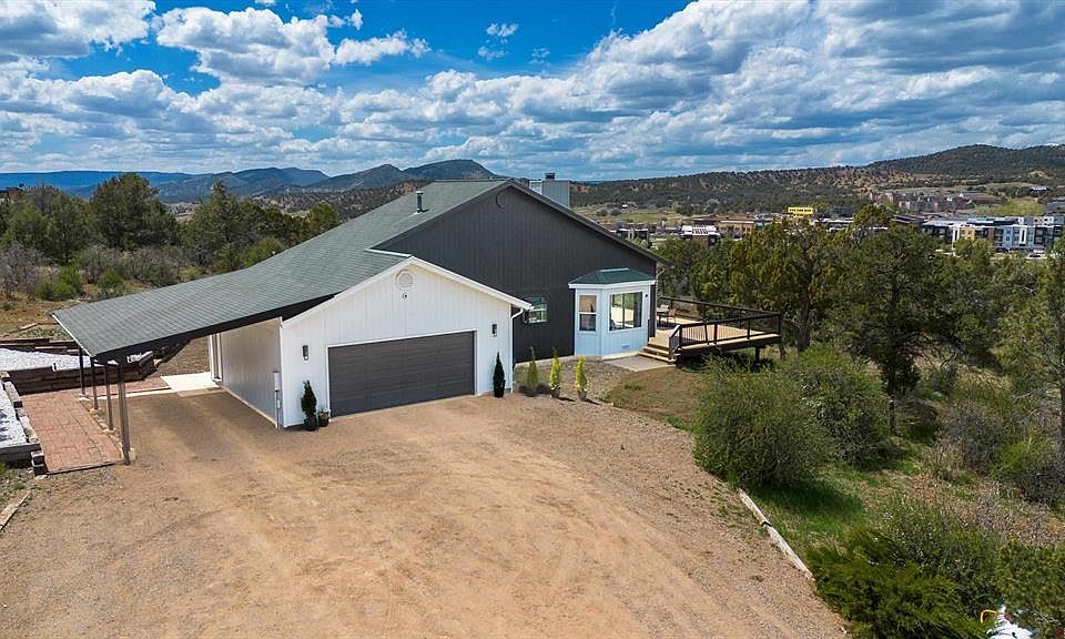 Discover this Fantastic Ranch style home nestled on 4 picturesque acres at the edge of town, offering stunning mountain views! A private oasis, this property is truly a hidden gem. Enjoy relaxing on the expansive back deck, savoring the sweeping 180-degree mountain vistas. The deck provides ample space for indoor-outdoor dining, perfect for family gatherings. Inside, the home is bright and airy, with scenic views from every window. The living room boasts a vaulted ceiling, additional windows, and a unique three-sided fireplace that connects to the dining room and kitchen. The kitchen is equipped with stainless steel appliances, a new dishwasher, and elegant Silestone countertops. Experience the convenience of single level living with 3 bedrooms and 2 full baths, hardwood floors in the entryway and dining room, tile in the kitchen and bathrooms, and brand-new plush carpeting. Recent updates include a new hot water heater (2019) and furnace (2020). Enjoy the Colorado evenings and stay comfortable with central air conditioning. Water service is ensured by a domestic well with an updated pressure pump (2017). City water access is also available. The HOA manages the main road maintenance and snow plowing. There are fire hydrants installed throughout the subdivision. Located near the Three Springs community, with access to walking trails, charming restaurants, shops and healthcare facilities. Don't miss out on this incredible home, offering peace, space, and close proximity to town. Schedule a showing today!