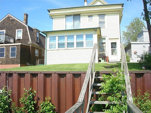 Village Water front seasonal or year round home in downtown Clayton close to numerous shops and businesses. This is a solid home with newer shingled roof & sheathing, inside needs a lot of work but potential is there to make this the home on the river that you have always talked about. Large wrap around front porch and a back porch off DR with sliding glass doors offers an amazing view of the St. Lawrence. Plenty of space with 4 bedrooms, 2.5 baths & permanent stairs to a full attic. Electric heat pump heat and A/C. Updated electrical panel & more storage in basement area. Typical older home w/small kitchen & built in cabinets, priced below assessment. Two boathouses. Come to Clayton and enjoy all that it has to offer.