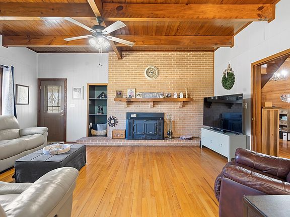 Welcome to your own Country Paradise! This charming Farmhouse is nestled in the peaceful countryside, offering a serene escape from the hustle and bustle of city life. But don't worry, you won't have to sacrifice convenience for tranquility. Located within 20 minutes to shopping, restaurants, hospitals and various activities, this property truly offers the best of both worlds. Step inside this spacious home and be greeted by over 2100 square feet of living space. With three X-large bedrooms and two bathrooms, there's plenty of room for the whole family to spread out and relax. The large eat-in kitchen is perfect for preparing delicious meals, while the cozy living room with its inviting fireplace is ideal for cozying up on chilly evenings. But the features don't stop there. This home boasts granite countertops with stainless steel appliances, beautiful hardwood floors, and ceramic tile bathroom showers, adding a touch of elegance to every corner. And if you're a horse lover, you're in for a treat! The property includes a 100 x 200 horse arena (can be removed if wanted) and a 36 x 60 Barn w/8 stalls that are 12 x 12 in size, complete with dirt floors topped with mats. Each stall even has its own fan, ensuring convenience for both you and your equine friends. The barn is equipped with a tack and feed room, its own water meter, and water is available on both sides. Plus, there's electrical fencing for the pastures, as well as a dedicated area for goats. If you're an outdoor enthusiast, you'll be delighted to discover three ponds on the property, perfect for fishing or simply enjoying the peaceful ambiance. Additionally, there are two outbuildings, one with electricity, providing ample storage space for all your outdoor gear. And for the hunters out there, you'll have 62.5 acres of beautiful land at your disposal, offering endless opportunities for hunting, horse riding, 4-wheeling, and more. Don't miss the beautiful Dove Field. This farmhouse is not only beautiful but also move-in ready. With a two-stage geothermal heating system installed in 2015, a durable metal roof, and a water heater replaced in 2018, you can rest assured that this home is in excellent condition. If you are needing a horse or two, seller will discuss this along with the goats that are one the property. So why wait? Embrace the tranquility and charm of country living while still enjoying the convenience of nearby amenities. This property is a true gem, offering a peaceful retreat and endless possibilities for outdoor adventures. Don't miss out on this captivating farmhouse - it's time to make it your own!