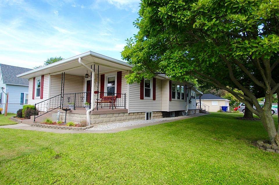 Exceptionally well kept 2 large bedroom, 1 1/2 bath bungalow features large open living and dining room with gorgeous original hardwood and sun bench perfect for seating and storage, applianced kitchen offers a multitude of cabinetry, large counter tops, and walk in pantry. Laundry/mud room is complete with coat and shoe storage area. Additional features include large closets and great storage space, replacement windows, newer furnace, new air conditioner, fully fenced yard, 2 covered porches, 2 car detached garage, large storage shed and vegetable garden.