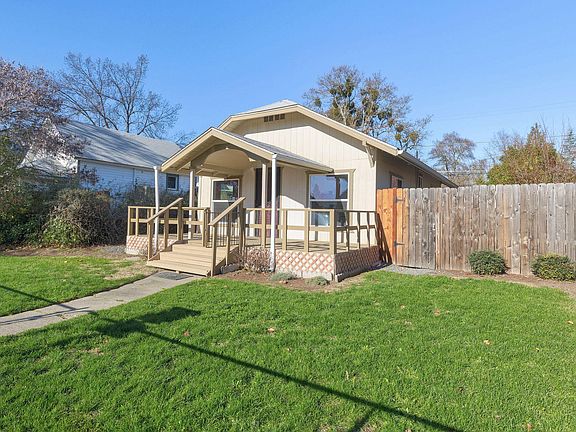 This is it! Charming 2 bedroom, 1 bathroom cottage near Grants Pass city center with easy access to shopping, restaurants & more. Set on a fully fenced, landscaped and spacious .12 acre lot. Start your mornings on the covered front porch and spend your evenings in the expansive backyard with bonus alley access and storage shed. Freshly painted inside and with newly refinished tub/shower in the bathroom. Also boasts vinyl flooring and a laundry room with extra storage space. Don't wait on this move-in ready gem, call to schedule your tour today!