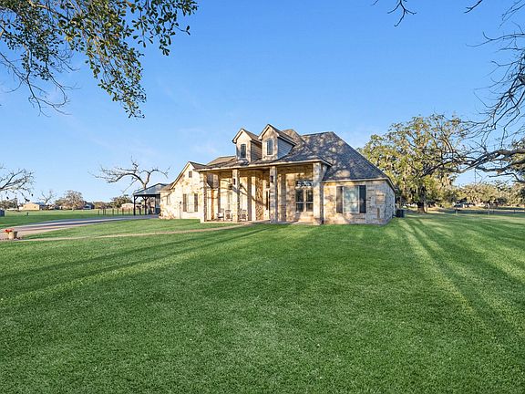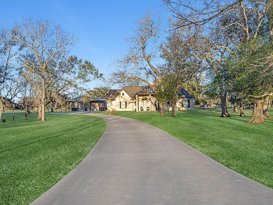Set on approximately 2.54 wooded acres along Mill Bayou, this custom home offers privacy, views, and thoughtful design throughout. A deep covered front porch with soaring ceilings leads to an 8’ iron entry door. The first floor features wood-look porcelain tile, coffered and tray ceilings, and a true open layout connecting the kitchen, dining, and living areas. The kitchen includes granite countertops, custom cabinetry, stainless appliances, and a large center island. Walls of windows across the rear of the home capture scenic bayou and backyard views from the main living areas and primary suite. The primary bedroom is privately positioned at the back with a spacious bath, oversized shower, soaking tub, dual sinks, and a custom walk-in closet. Secondary bedrooms are located toward the front for added separation, with a large upstairs flex room ideal for a game room or bedroom. Enjoy abundant wildlife, mature trees, and peaceful outdoor living in this one-of-a-kind setting.