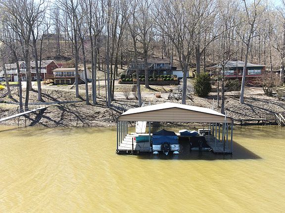 Embrace lakeside living at its finest! This stunning waterfront home on Kentucky Lake offers the perfect blend of relaxation and recreation. The main level features 3 bedrooms and 2 baths, while the finished basement provides an additional 2 bedrooms and 1 bath – ideal for family and guests. Enjoy year-round water access with a lit walkway leading to a two-boat dock. The attached 2-car garage ensures convenience. Relax and soak in breathtaking views from the expansive back deck. Located less than a half-mile boat ride from Beaverdam Marina and Restaurant, this fully furnished lake house is ready for you to create lasting memories. Kentucky Lake, renowned for its world-class bass and crappie fishing, awaits! Seize the opportunity to own your piece of paradise.
