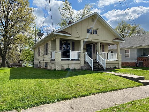 This two-bedroom home has large room sizes, a covered front porch & central air. It sits on a full, unfinished basement, has its own driveway and a nice sized backyard. Lots of newer windows. Exterior of the home painted May 2020. New furnace & kitchen appliances also in 2020. Laundry hookups are on the main level and basement. Large storage shed in backyard will stay.