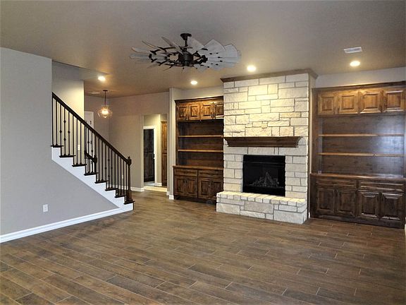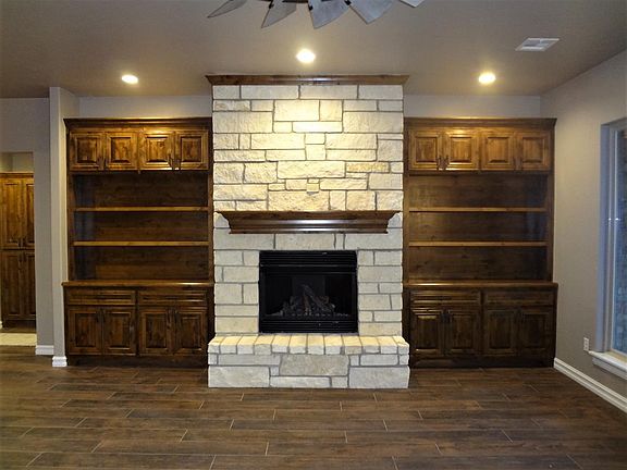 - INT/EXT FEATURES: Garage Door Opener, Fireplace, Gas Logs, Slab, Patio, Lawn Sprinkler System, Other (See Remarks)