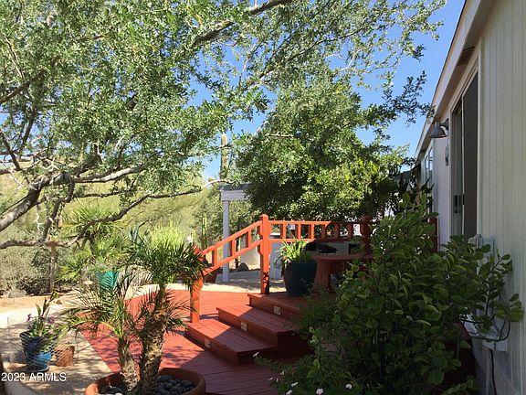 STOP THE CAR- This home has so much to offer inside and out. Open split floor plan with 4 bedrooms. The exterior walls are 2x6 construction on a CMU stem wall. New roof 4/23 and new exterior paint 8/23. There are newer stainless steel appliances, lots of storage, new cellular shades throughout and a Murphy bed with side cabinets. Private well w/storage tank, numerous mature shade trees, saguaros and other native desert plants. It is professionally landscaped with covered custom bar w/built in grill, mini fridge, TV, redwood deck, retaining walls, night lighting and firepit. For horses/toys there is a shade structure with water and conduit for electricity.. This home is near lakes, Lost Dutchman State Park & Salt River with Mtn views and city lights. Sunrise and sunsets are amazing!