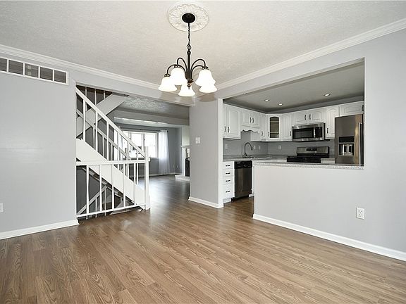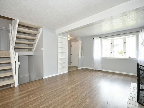 This beautifully updated townhome with NEW flooring and paint throughout is ready for its new owner! The bright living room features a bay window, log burning fireplace and built-in shelving. The refreshed eat-in kitchen has NEW stainless steel appliances and a large peninsula with storage that opens into the dining room. French doors in the dining room lead out to a huge deck overlooking the spacious yard. Upstairs, the owner suite has a private vanity area & large walk-in closet. The 2 additional bedrooms also feature large closets. The main bathroom has an oversized vanity, tiled flooring, & a new tub with modern tile surround. Downstairs is a fabulous entertaining space which opens to the large covered patio. This level also has an extra storage room and laundry room. Two assigned parking spaces are located directly in front of the home. Conveniently located, Hunting Ridge also provides a clubhouse, pool, tennis/basketball courts, playgrounds & walking trails for you to call home!