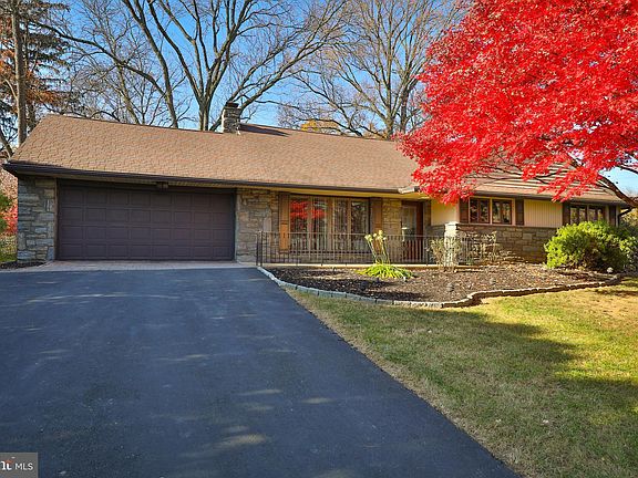 This attractive stone front custom expanded ranch is located in the desirable & beautiful neighborhood of Crosswicks in Abington Township. This lovely home is situated on a professionally landscaped .36-acre lot located on a picturesque quiet street. The entire home is freshly painted with a beautiful natural palette. A spacious entry foyer opens into a large living room with floor to ceiling stone fireplace, crown molding and a picture window overlooking the front patio. The dining area which is an extension of the living room also feature a picture window to create a nice balance. The eat-in kitchen feature quartz counters and stainless-steel appliances. A door from the kitchen leads to a large deck that is perfect for outdoor gathering and al-fresco dining. The primary bedroom which is used as a den currently is connected to the kitchen by a French door for easy access and it has an en-suite updated bathroom with a glass enclosed shower. A full hallway bathroom is located near the second large bedroom on the main level. The upper level consists of two large bedrooms and a hall bathroom. One bedroom has a built in desk and nice closet and the other bedroom has a walk-in closet , a second closet and a door to leading to an office and attic storage,. A large basement features a huge pantry closet, laundry area and 2 other rooms that could easily be turn into another office and separate workshop area. The large 2 car garage with inside access has fantastic built-in cabinetry including a beverage refrigerator. Great closets and storage space throughout the home. Solid hardwood floors under all the carpeted areas of the house. A great home for a buyer who is looking to downsize and have a first floor primary bedroom.