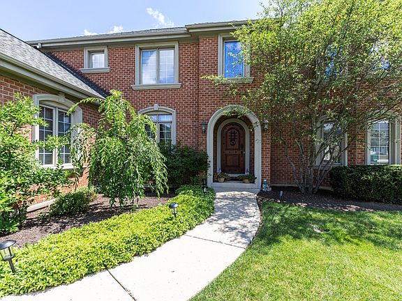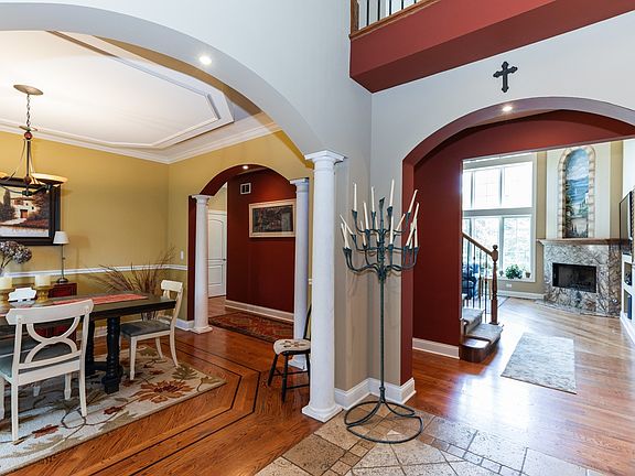 WOW - Brick traditional style home with large Turret adding to the architectural statement this home already offers. Custom arched doorway and solid wood door with handy speakeasy feature and stain glass window. 1st floor boasts oak hardwood floors, oversized custom tiled flooring, formal dining room with custom hardwood pattern, arch ways & columns add to the statement this room brings. First floor turret bonus room can be use as media room or use as home office, large two-story family room with prominent floor to ceiling window bank which brings in the natural light (Huge electric exterior shade to help control the light and heat into the family room, if needed), dramatic marble fireplace and media center. Spacious gourmet kitchen space with large center island, wine rack, granite counters and stainless-steel appliances and additional eat-in kitchen space. Big laundry room / mudroom and powder room. First-floor in-law suite with full bath featuring a large walk-in shower. Second floor features four bedroom (or three bedrooms and a home office). Luxurious master bath with natural stone, Greek tumbled marble, jacuzzi with 10 jets and full shower with message jets. Nice Jack and Jill full bath set up for two of the extra bedrooms as well. Finished lower level with custom 9 seat movie theater, balcony seating, poker or game night space with kitchen amenities, 1/2 bathroom and arcade / game table room plus the unfinished storage and utility space and don't forget to see the private basement door leading to the exterior of the home. Large extra deep asphalt driveway with 3 car attached garage. Two separate and distinct invisible fences - one for the back yard and one for the front yard (use the front as the emergency back-up system). Great lot location, landscaping and schools. Close to all amenities.
