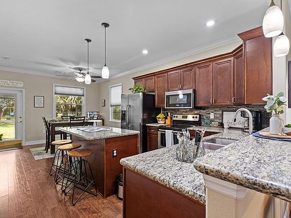 - Breakfast Bar, Ceiling Fan(s), Crown Molding, Granite Counters, Open Floorplan