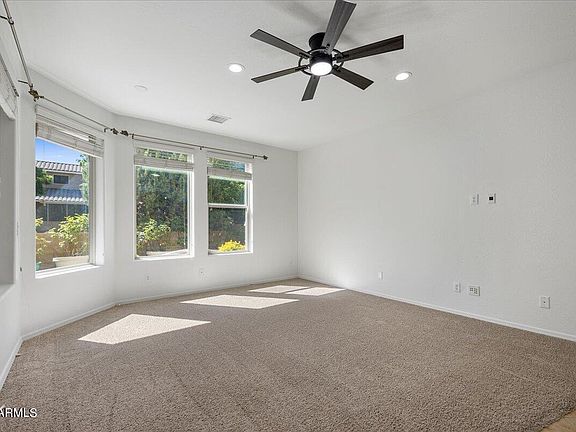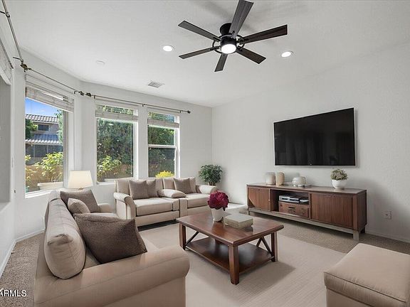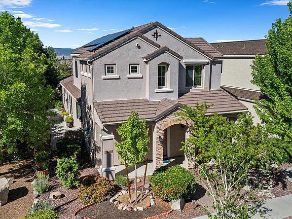 Beautifully renovated home on a desirable Premium Lot in Stoneridge! 4 bedrooms, 3 bathrooms, 2 car garage, 2,257 square feet. NO SOLAR LEASE! The solar is OWNED and home has battery backed-up electric. Numerous recent upgrades include fresh interior paint, new carpet, high end stainless steel appliances, and refinished kitchen cabinets with new hardware and soft close doors. Tile has been steam sanitized, grout has been refreshed and epoxy sealed. New modern LED lighting throughout with smart ceiling fans. Generously sized primary bedroom on main level with heated walk-in closet and large newly updated en suite bathroom featuring dual vanity and walk-in shower. Upper level holds 3 bedrooms and bonus room/office/possible 4th bedroom. Great covered patio and dog run with lots of greenery. This master planned community has amenities such as a Golf Course, Clubhouse, exercise room, Olympic sized pools, and pickleball courts. Come take a look today! Seller is willing to convert craft/hobby room back into a bedroom if needed!