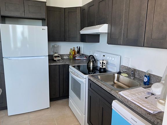 One bedroom apartment at Sea Cliff Villas, about 1000 SQ feet. Your backyard is the ocean. The apartment is on the first floor. It is freshly painted throughout with a new fridge, cabinets, oven, dishwasher, washer and dryer. It is completed with a new bathroom with tub. The bedroom is furnished with a cherry wood king size bed, a tall chest drawer, and two end tables. The bedroom also has a huge closet. The living/dinning room is furnished with a couch set, diner table with 4 chairs, a 40" Samsung smart TV. The apartment is cooled by a brand new air conditioning split system with low energy feature. The unit is inside a gated community. It has one designated parking space. The complex has multiple swimming pools (shared with Water Gate Villas and Regatta Point). Our back yard is a quiet rock beach. It's in walking distance from Water Gate Villas and Bolongo Beaches. There are also a tennis court at Regatta Point. It is available for yearly lease. Sign lease with one month security deposit. Utilities (electricity + internet + cable tv) is not included. Move in with the first and last month rents. Sorry no pet. Due at signing, security deposit. At move in, 1st month rent and last month rent.