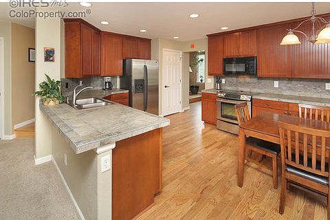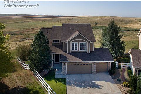Stunning views! Amazing 2 story home backing to Coyote Ridge Natural Area. Situated on a quiet cul de sac, this gorgeous home boasts 5 bedrooms(or 4 and an office), 4 baths, 3 living areas, and a 3 car heated garage. Kitchen features beautiful cherry cabinets and hardwood floors. Large master suite has 5 piece Master bath. Walk out basement. Neighborhood pool, clubhouse and 2 parks! Enjoy the beautiful foothills and the lovely sunsets from the deck or patio below. Great views, home and location!