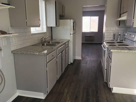 This completely updated 2 bedroom, 1 bath (~700 sq. ft) end unit is on the 1st floor of a 1960's 7-plex. *There is no one living above you !* This renovated apartment has granite countertops and subway backsplash. The bathroom is all new - tile surround, tub, fixtures and granite vanity top. New flooring in the living room, kitchen and bathroom. New carpet in the bedrooms and 6 panel doors with new hardware. The bedrooms each fit a queen sized bed nicely, with plenty of closet space with new mirrored doors. The kitchen has a good sized eating area and a large pantry. It flows nicely to the living room which comes with an A/C unit. There is a W/D in the unit, two assigned parking spots right in front of your door, and a private patio in the back. Everything you need is within a mile: Target, King Soopers, and Walmart. It is on the 20 bus route with easy access to Sloan's Lake (1+ mile), 3/4 mile to light rail, 6 blocks to Crown Hill Open Space Park, 2 blocks to Morse Park Rec. Center and pool, 1 block to Aviation Park. Water, sewer, parking and trash included. Available now. $1475 deposit. Year lease. NO SMOKING of any kind. No Pets. Application Fee: $25 per adult NO SMOKING of any kind! No debt owed to previous landlord. Owner pays water, sewer, trash. Tenant pays electric and heat