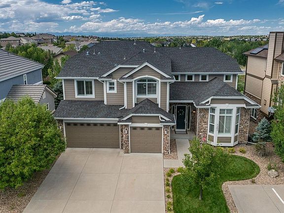 Get ready to be impressed by this gorgeous custom-built home! Nestled in the coveted Saddle Rock East neighborhood, this 4 bedroom, 3 ½ bath, 3-car garage masterpiece is an absolute showstopper. Freshly painted walls and brand-new carpeting make this home move in ready for its new owners. Located in the renowned Cherry Creek School District, and close proximity to endless bike paths, parks, and the prestigious Saddle Rock Golf Course right at your doorstep. As you step inside, you'll be greeted by soaring ceilings, a grand circular staircase, and an abundance of natural light. The main floor is an entertainer's dream, with a formal dining room, living room, and a chef's kitchen that will make you the envy of all your friends. With hardwood flooring, slab granite countertops, stainless steel appliances, and stunning cabinetry, this kitchen is truly a work of art. And when it's time to unwind, curl up in the cozy family room with built-in shelving and a gas fireplace that's perfect for chilly nights. A large private office is tucked right of the family room for when it's time to get to work. The second floor will certainly not disappoint, with all four bedrooms, including the luxurious primary suite. With its own fireplace and breathtaking views of the front range, you'll never want to leave this oasis. The spa-like en-suite bath has undergone a complete transformation, with a free-standing tub, granite slab countertops, custom tile flooring, a huge double-headed shower, and a walk-in closet big enough for two! Wait until you see the unfinished walkout basement. With soaring ceilings and almost 2000 square feet of possibility, you can let your imagination run wild. And when it's time to take a break, step outside onto the beautiful back deck and take in the awe-inspiring views of the open space. This home truly has it all, and it won't be on the market for long. Don't wait – come see it for yourself today.