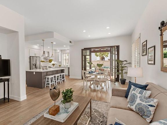 Welcome to this stunning, updated 1,705 sq ft residence nestled in the gated community of Marea at Aviara. Boasting 3 bedrooms, 2.5 baths, and a 2-car garage, this bright and airy home features luxury vinyl plank floors throughout, creating an inviting and sophisticated atmosphere from the moment you step inside. The spacious living room seamlessly flows into the kitchen and dining areas, perfect for entertaining. The fully remodeled kitchen is a chef's delight, featuring quartz countertops, a stunning oversized island with counter seating, stainless steel appliances, soft-close cabinets and doors, and a picturesque window overlooking the yard. A convenient powder room completes the lower level. French doors lead to an inviting outdoor area with a spacious patio, built-in BBQ, and a tranquil water feature, ideal for both entertaining and relaxing. Upstairs, you will find a large primary suite with a retreat area, two closets (including a walk-in closet), and a luxurious primary bath with a walk-in shower, soaking tub, and dual-sink vanity. Two additional bedrooms share a Jack and Jill bathroom, and an upstairs laundry room adds to the home's convenience. The Marea community offers a secure and exclusive living experience with its gated entrance. Residents enjoy a community pool and spa with stunning ocean views and the unique advantage of watching 4th of July fireworks from the pool, along with a well-maintained grassy area for activities. Conveniently located near golfing, beaches, shopping, and restaurants, Marea provides easy access to the best local amenities and attractions.