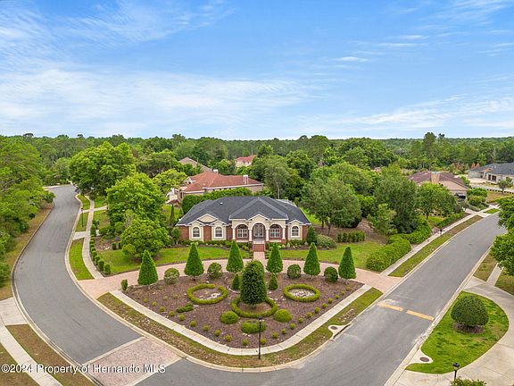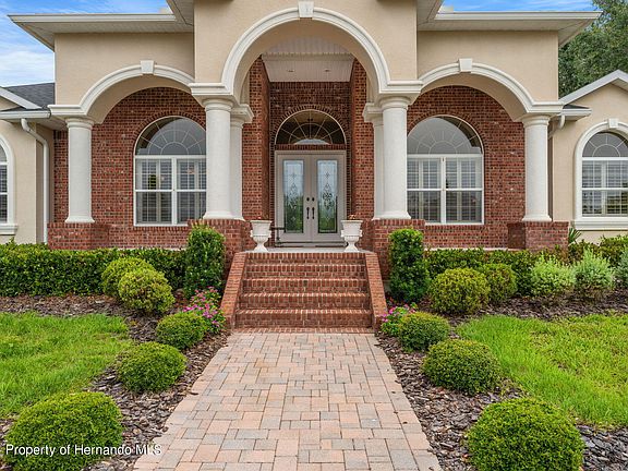 SPRING HILL / WEEKI WACHEE This one-of-a-kind, custom-built BRICK luxury home features 4 BEDROOM PLUS AN OFFICE/STUDY, 3 full bathrooms, and a 3-CAR GARAGES. It also boasts a POOL & SPA with a huge lanai. Located in the GUARD-GATED Waters of Weeki Wachee community, you'll have direct access to the Weeki Wachee River. Situated on a corner lot, this home has an ULTRA-PRIVATE BACKYARD with no rear neighbors in sight. The mature landscaping and brick exterior provide great curb appeal. It has TWO DRIVEWAYS: a circular one in front for guests and another leading to the side-entry 3-car garage. Step through the 8-FOOT LEADED GLASS DOUBLE FRONT DOORS into luxurious formal living areas featuring decorative columns and French doors that offer a pool view. Inside, you'll find 10-foot or taller ceilings, HARDWOOD FLOORS, fresh paint, and tray ceilings with backlights. The living room has a gas fireplace with a HAND-CARVED, IMPORTED CALCIUM MARBLE SURROUND. The home also features imported Italian PORCELAIN FLOOR TILES, window seats in the bedrooms, solid MAPLE CABINETRY in all bathrooms, and plantation shutters throughout. The chef's kitchen offers plenty of counter space, a center island, a breakfast bar, and even a wine bar! The primary bedroom suite includes a separate sitting area with French doors leading to the lanai, his and hers walk-in closets, and a private bathroom with a JETTED GARDEN TUB, dual sinks with a vanity area, and a large walk-in shower. The screen-enclosed lanai is massive, featuring a huge covered area for outdoor living with a bar/kitchen area, a brick paver pool deck, a HEATED SALTWATER POOL with an in-floor cleaning system, and an outdoor shower. The home has a stem wall foundation, plywood flooring in the attic for added storage, and TWO AC UNITS (one brand new in 2022) with 5-zone heating and cooling. Additional features include a water softener, a reverse osmosis system in the kitchen, a whole-house CENTRAL VAC SYSTEM, a surround sound system, a radiant barrier, an electric instant hot water heater (40 gallons), A NEW ROOF (2023), and an irrigation well. The Waters of Weeki Wachee is a charming, guard-gated community with tennis courts, basketball courts, and a small private beach on the Weeki Wachee River. This secluded community provides easy access to the river, perfect for kayaking, paddleboarding, and exploring Florida's Gulf Coast. Whether you're seeking adventure or tranquility, this home offers the best of both worlds. Residents enjoy exclusive access to fantastic amenities, including a deck area and kayak storage at the community river park. With its exceptional features, prime location, and community perks, this home truly has it all! Don't miss your chance to own this slice of paradise. NO CDD, LOW HOA AND NO FLOOD ZONE!
