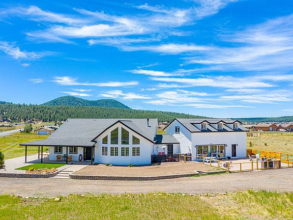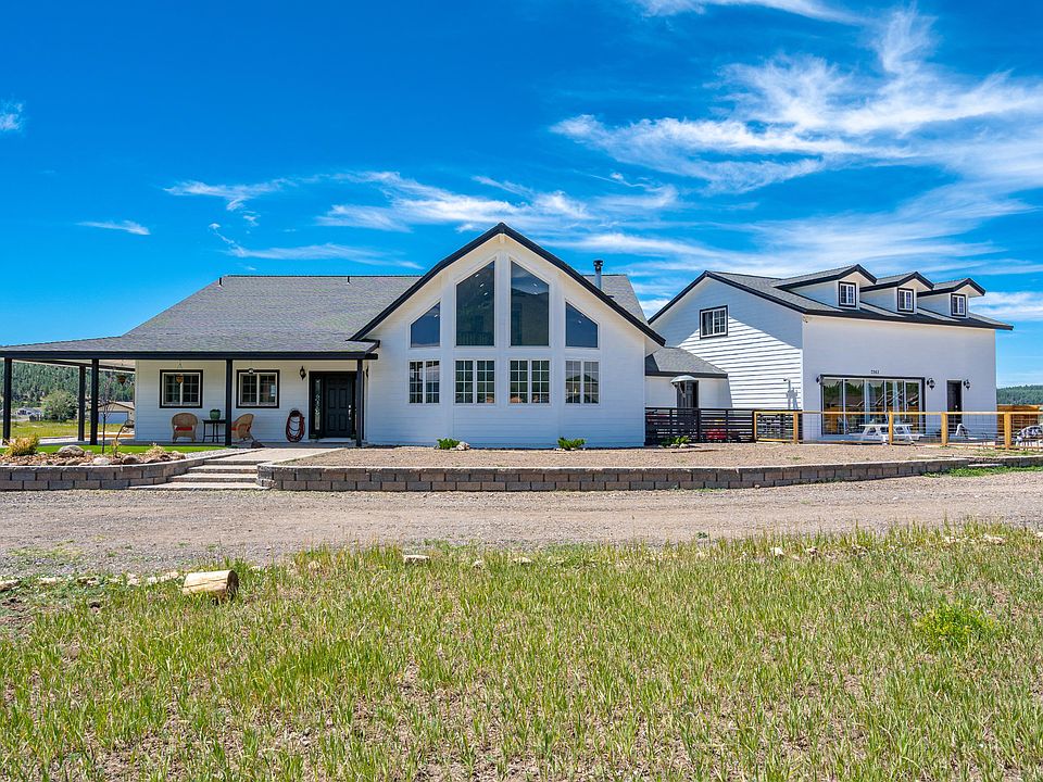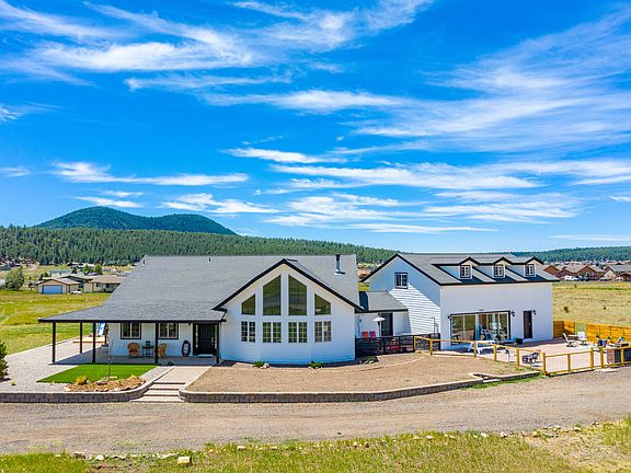 This custom home sets in the shadows of the San Francisco Peaks! MULTI GENERATIONAL OR PERFECT VACATION RENTAL.. Massive open living space with floor to ceiling windows to take in the amazing views of the PEAKS and cozy wood burning stove. The main home offers 5 bedrooms and 3 baths. Main level spacious master bedroom with beautiful master bath with dual sinks, walk in shower and jetted tub. Lovely kitchen with granite counter, breakfast bar and huge walk in pantry. 2nd home is equally impressive with 3 bedrooms, stained concrete floors, wall of windows with peak views, wood burning stove and open stair case. The kitchen has butcher block counters, subway tile back-splash, farm sink and stainless appliances. This amazing home sits on 2 acres and has horse privileges.