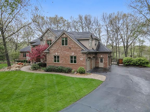 Bargain deal with optional lot included, making this an almost 10 acre site! Stunning brick & stone home is located in small luxury niche neighborhood on quiet cul-de-sac lot overlooking views & gorgeous landscaping w/mature trees on 4.74 acre lot. This gracious, custom residence will outshine them all w/the setting, quality updates & improvements thru-out. Fabulous layout - Great rm offering commanding views w/wall of windows, blt-ins & stone FP. Din area with access to patio. Gourmet kit is part of central liv area & showcases hi-end maple cabs, 20'' travertine flr, professional SS appls, Lg island w/sink & bar counter & huge W/I pantry. Adjoining study w/hrdwd flr, tray ceiling & plantation shutters. 1st flr M. suite is a quiet retreat w/tray ceiling, 2 W/I closets & lovely wooded views. Lux M. bath w/travertine tile, spa tub & dual wrap vanity w/granite. 4C custom gar, sep mud & laundry rm. 2nd flr w/all that is needed - 2 bdrms w/J&J upgraded bath & bdrm ensuite w/3rd bath. Nicely FIN LL w/huge rec/game area, kitchenette, 5th bdrm, full bath & exercise/office w/blt-in cabs & desk. Newer, upscale paver patio w/blt-in FP & walls w/nature views is the icing on the cake!