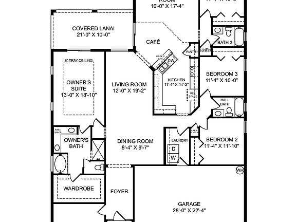 Under Construction. Under Construction. New construction home with 2487 square feet on one-story including 4 bedrooms, 3 baths, and an open living area. Enjoy an open kitchen with 36" staggered shaker-style cabinets, granite countertops Samsung stainless steel appliances, pantry, and a large breakfast bar, fully open to the dining café and gathering room. The living area, laundry room, and baths include luxury wood vinyl plank flooring, with stain-resistant carpet in the bedrooms. Your owner's suite is complete with a walk-in wardrobe and a private en-suite bath with dual vanities, a large tiled shower, spa tub,and a closeted toilet. Plus, enjoy a covered lanai, 3-car garage, custom-fit window blinds, architectural shingles, energy-efficient insulation and windows, and a full builder warranty. "Please note, virtual tour/photos showcases the home layout; colors and design options in actual home for sale may differ. Furnishings and decor do not convey. SOCIAL DISTANCING AND/OR MASKS REQUIRED IN ALL MODELS
