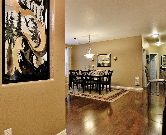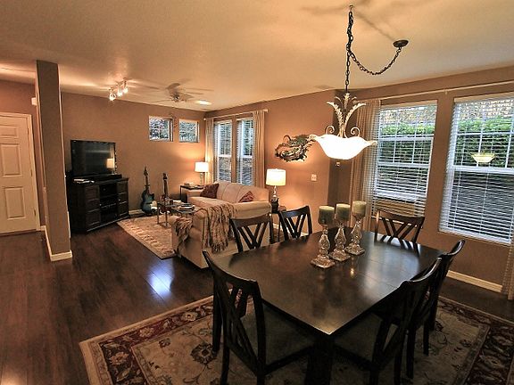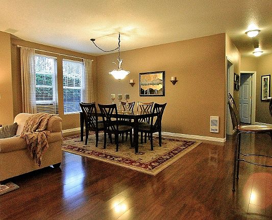 This is a beautiful renovated condo in the Aloha area. Ground floor unit with an very open floor plan and 2 large bedrooms with a den.Stunning dark hardwood floors and modern paint give this condo a very nice warm feeling once you walk in. Living room is wired for surround sound!Kitchen has granite counter tops, stainless steel appliances, and lots of storage. Very spacious master suite with large bathroom, dual vanity sinks and a walk-in closet. Washer/dryer also included. Window A/C Unit.Parking is not a problem with your two car garage - and extra storage cabinets in the garage as well.Sorry, no pets allowed.