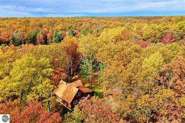 Secluded home in the woods on 10+ acres of wooded property. Peace, Quiet, Mother Nature, Hunting, World Class fishing, Modern living conveniences, and so close to so much more out door activities that Northern Michigan has to offer. This property with its private entrance and secluded setting, has 3 bedrooms, 2 baths, new copper colored metal roof that was extended over the large back porch, two heat sources, Air Conditioning, and wait there is a shared 45 foot easement to the Little Manistee River. The current owner has remodeled and made some significant updates to the property. SEE ''MORE'' Remodeled kitchen with granite counter tops, new cabinets, new flooring, complete bathroom remodel on the second floor, large double windows with great views of wildlife, 4 split air units, new front deck. added an additional bathroom upstairs, added a large lien too area to the existing 30 x 40 garage, and a new septic and drain field installed in spring of 2023, There are also two Redneck Blinds with heaters. This could be a year round home with hunting, fishing, and10 acres plus, to the north the is 150 acres of State land that only 4 properties can access. This stick built home has all the modern conveniences, and comfort you don't find just anywhere. Large pole barn, multiple decks, remodeled kitchen, large bay windows, acreage, access to Little Manistee gives you the ability to fish for Trout, Salmon, and Steal-head to fill your freezer is full. Peace, Quiet, Mother Nature, Hunting, World Class fishing, Modern living conveniences, and so close to so much more out door activities that Northern Michigan has to offer.