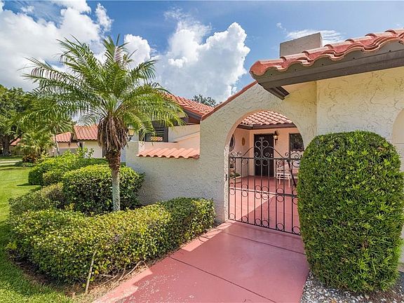 Handsome Mediterranean style villa in Golf Pointe at Palm Aire is available to move right in! Large (over 2000 sq. ft.) two bedroom plus den condo with enclosed Florida room is being sold furnished. Open floor plan with updated kitchen and baths, 2 car garage and beautiful lake views both front and rear make this villa special. Enclosed gated patio at the entrance to the unit provides outdoor entertaining space. Kitchen has wood cabinets, Corian counters, breakfast area, pantry and inside laundry. Baths have wood vanities and granite counter tops. The enclosed Florida room is tiled and features sliders that open for fresh air. This home has been modified for scooter or wheelchair access. Golf Pointe is a maintenance free community so you have all the benefits of a single family home without the work. Palm Aire Country Club membership is not mandatory and you can buy a golf, tennis or social membership. Golf membership includes use of two-18 hole courses. Tennis membership includes use of 10 tennis courts. Social membership includes club sponsored activities and full dining facilities. Nearby is University Town Center Mall, numerous restaurants and easy access to I-75 and Sarasota Airport.